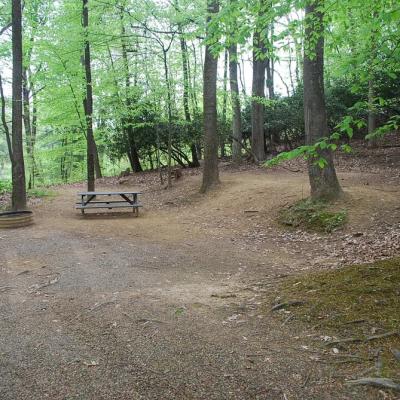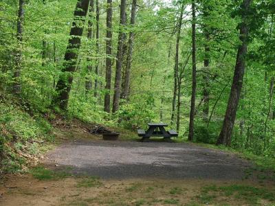 All sites have a picnic table and a firepit. The sites are mostly shady.