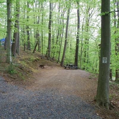 Site 7 - can hold 1 large tent or 2 small tents. Close to the bathhouse. Good for motorcycle, car/van and roof-top camping.